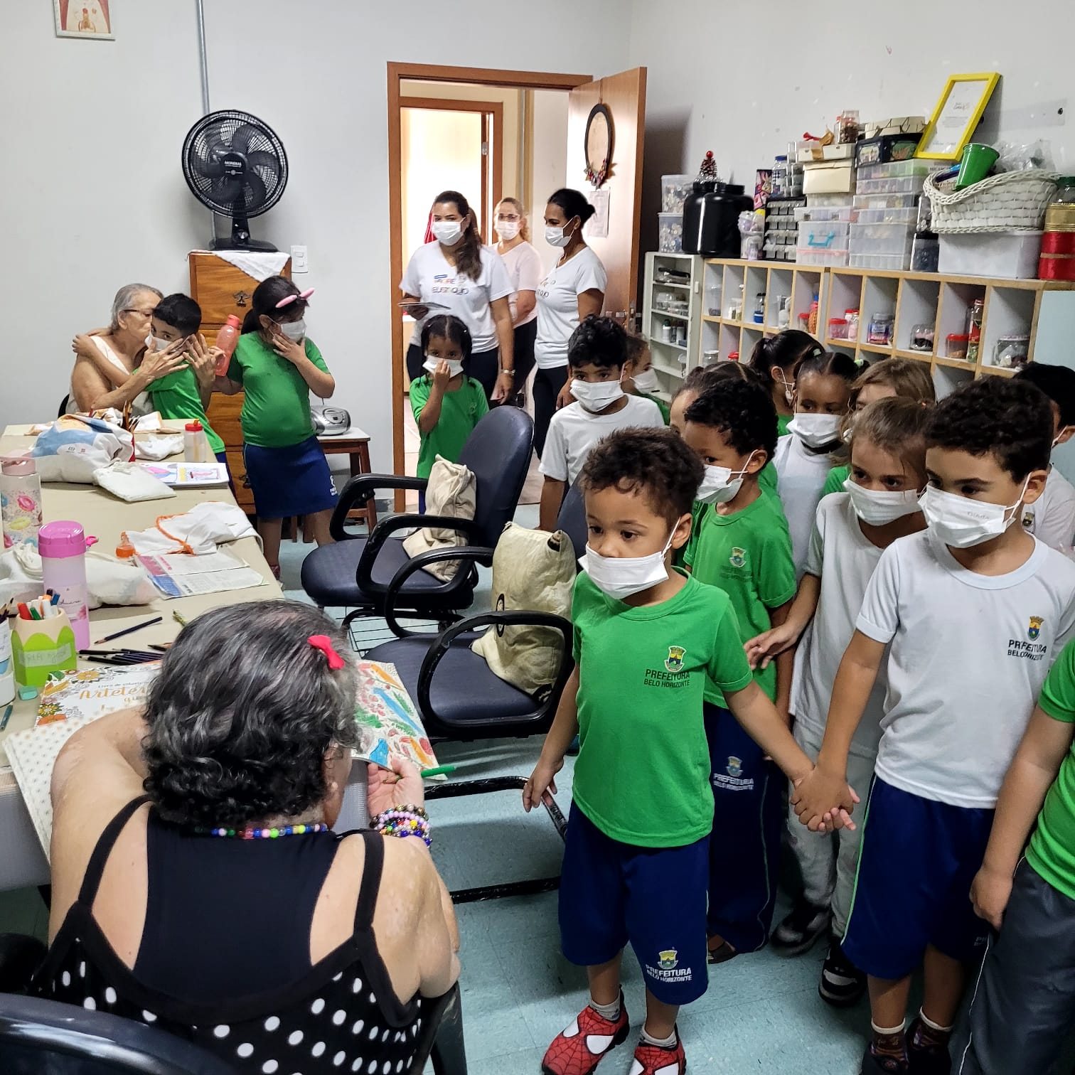 Alunos da Creche Padre Eustáquio visitam idosas do Lar Dona Paula