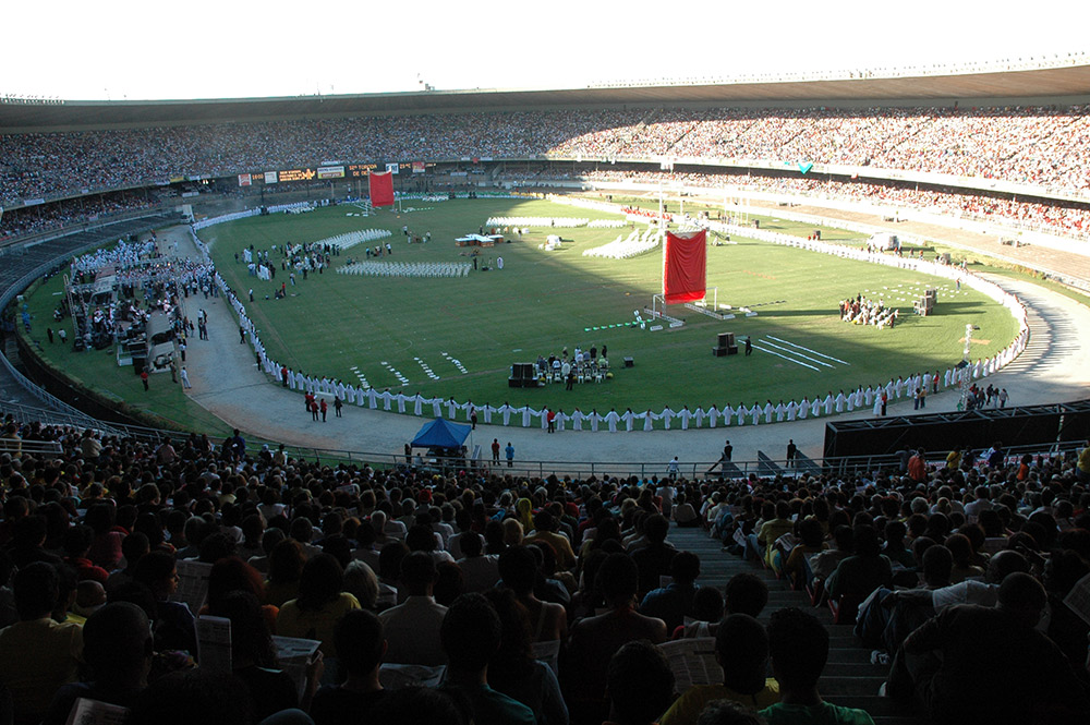 O Estádio do Mineirão, em Belo Horizonte-MG, acolheu, na festa de “Corpus Christi”, a multidão de fiéis vindos das paróquias de Belo Horizonte e de outras cidades. Eram mais de 80 mil pessoas participando da 12ª Torcida de Deus.
