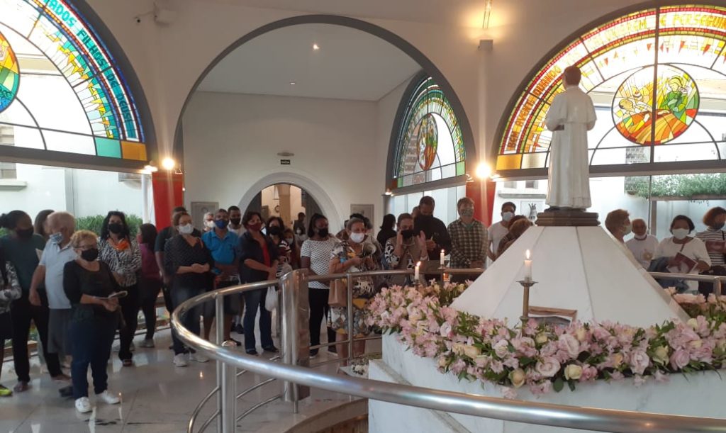 The festivities in Belo Horizonte began at 6:00 AM with the celebration of Holy Mass, broadcast on the Padre Eustáquio Channel. Immediately afterward, the doors of the Sanctuary were opened to the faithful arriving from various parts of the country. Cida Oliveira came from Rio de Janeiro to give thanks for all the graces received through the intercession of Padre Eustáquio. From Belo Horizonte and the metropolitan region, thousands of people also paid homage to the Blessed. To accommodate everyone, a corridor with markings on the floor helped to delineate the space and maintain social distancing. At the entrance, temperature checks and hand and shoe sanitization were performed. Also present was the vice-mayor of Belo Horizonte, Fuad Noman. A devotee of Padre Eustáquio since childhood, Noman said he always visits the Sanctuary to give thanks for the countless graces received.