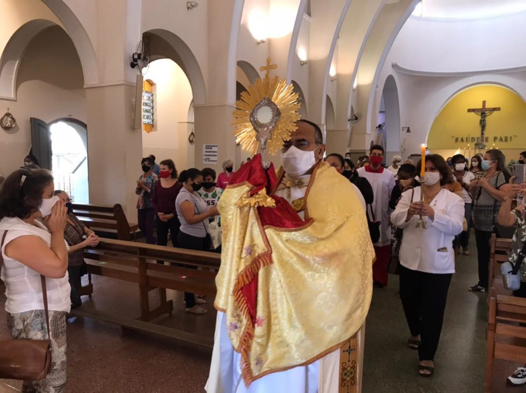 Father Vinícius Maciel, ss.cc, who presided over the 10 a.m. celebration, was the one who followed in the motorcade, carrying the Blessed Sacrament. This is the second year that the traditional procession has not been held and has been replaced by the motorcade, due to the pandemic.