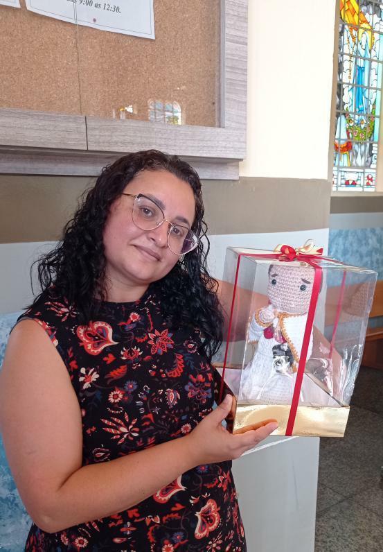 Marisa Vieira is 38 years old and owns a crochet studio in Poá. A devotee of Padre Eustáquio, she was challenged by Father Reginaldo Martins da Silva, parish priest of the Nossa Senhora de Lourdes Church, which she attends, to make an amigurumi of the Blessed. As there were no patterns for the piece, she had to use her creativity and the result was incredible.