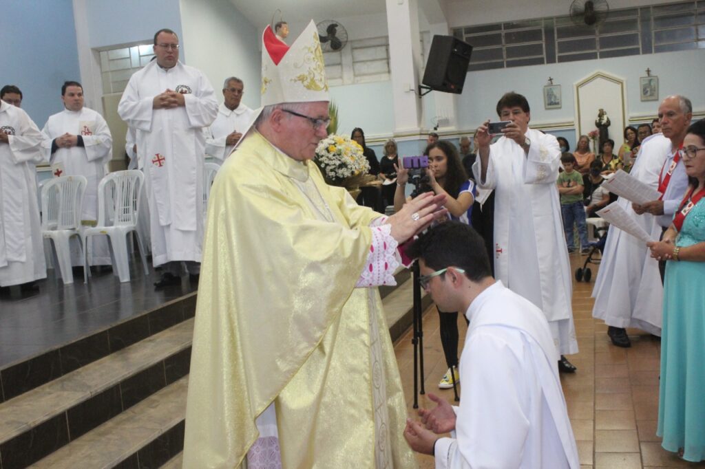 Father Vítor received the sacrament of Holy Orders last Saturday, the 19th, at the Church of Our Lady of Fatima, São Damião de Molokai Parish, in Patrocínio-MG. The celebration was presided over by the diocesan bishop of Patos de Minas, Dom Cláudio Nori Sturm, OFM.