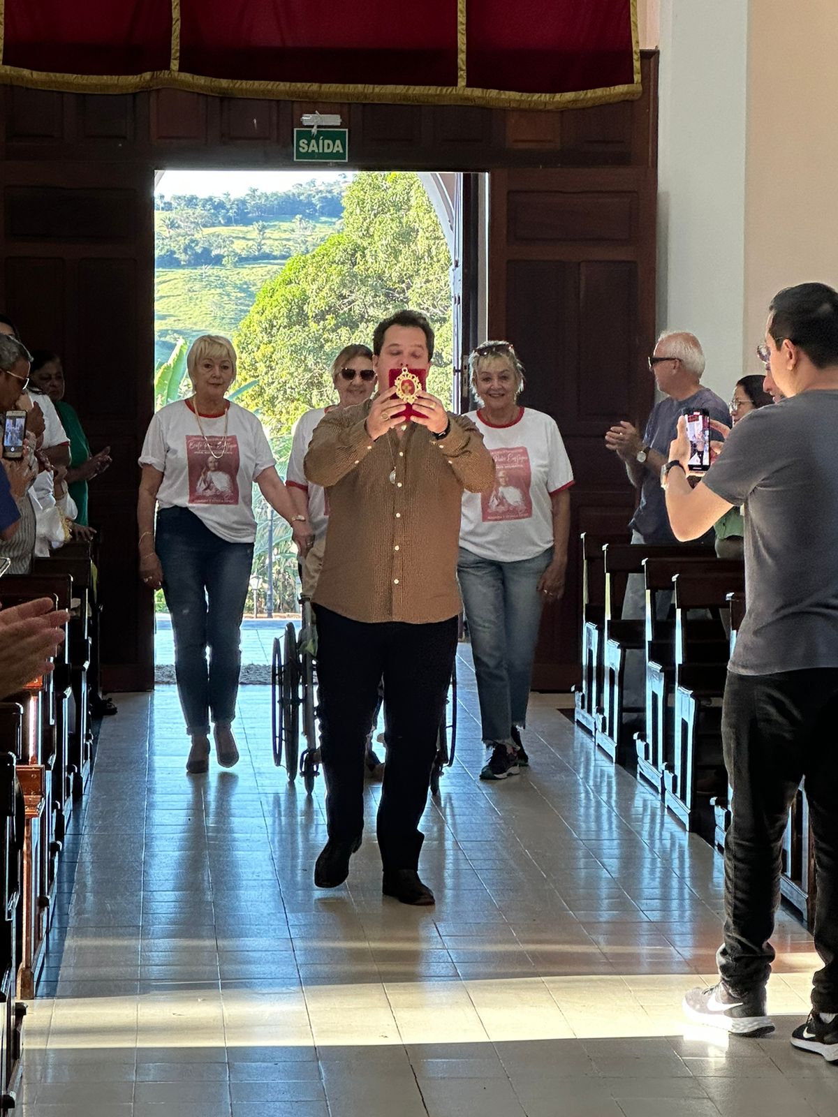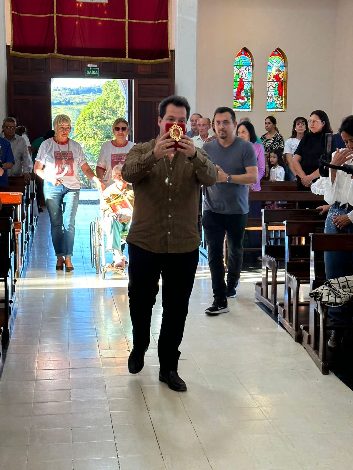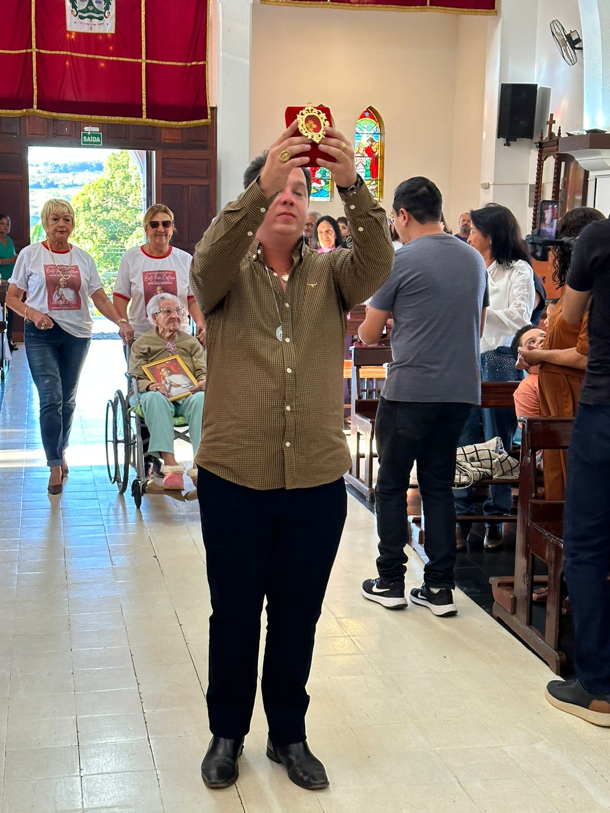 The relic was presented to the community in a beautiful celebration presided over by Dom Paulo Francisco Machado, Bishop of Uberlândia, with the presence of the parish priest of Nossa Senhora Mãe dos Homens Parish in Estrela, Father William Garcia. It was transported by businessman André Faleiros, a great devotee of Father Eustáquio. On the occasion, the mayor of Estrela do Sul, Dayse Galante, also attended the arrival of the relic and the Eucharistic Celebration at the main church.