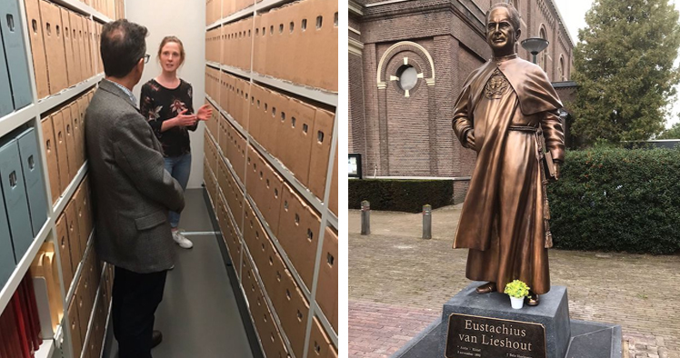 Last week, the Superior General of the Congregation of the Sacred Hearts, Fr. Alberto Toutin, ss.cc., and the Vice-Superior, Derek Laverty, ss.cc., visited the Monastery of Saint Agatha, where the archives of more than 115 male and female congregations in the Netherlands are located. They toured the archives and spoke with those responsible for the collection to learn more about all the material stored there.