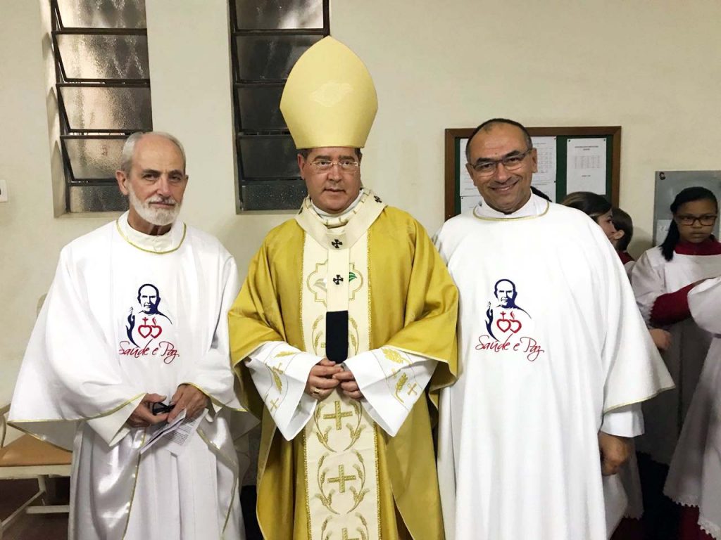 The Metropolitan Archbishop of Belo Horizonte, Dom Walmor Oliveira de Azevedo (center in the photo) and the Postulator of the Cause of Canonization of Father Eustáquio, Fr. David Reid (left), were present at the 75th Feast of Father Eustáquio, held on August 30th. Dom Walmor presided over the 6 pm Mass, which was concelebrated by Father David (postulator) and Father Vinícius Maciel (vice-postulator), pro-rector of the Sanctuary of Health and Peace.