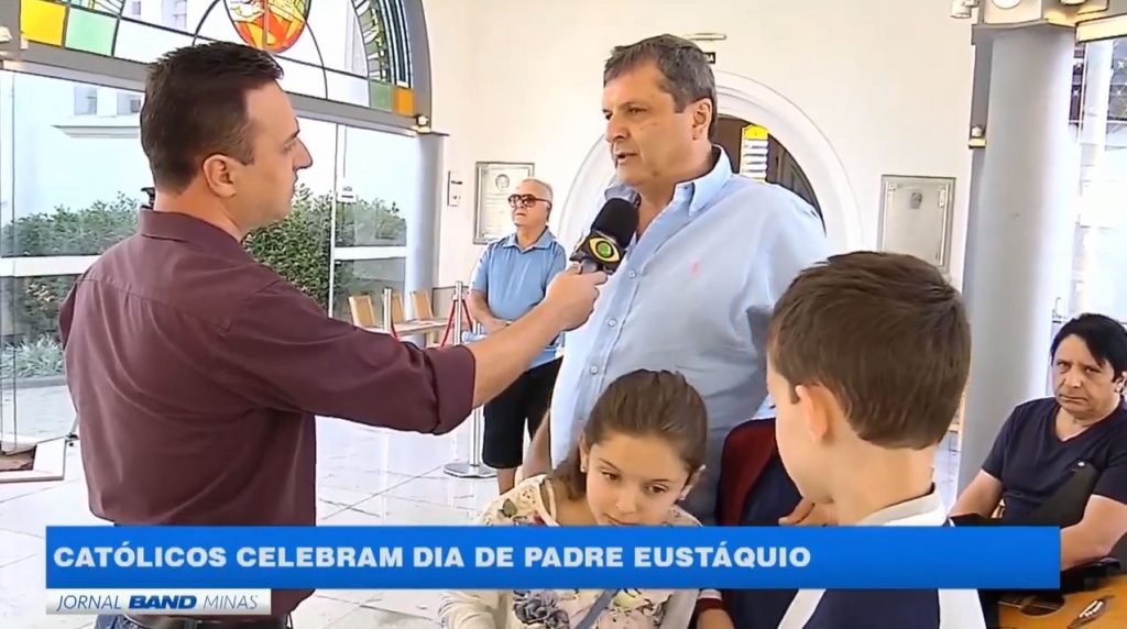The report was shown on Jornal Band Minas and highlighted the celebrations surrounding the 100th anniversary of Father Eustáquio's priestly ordination.
