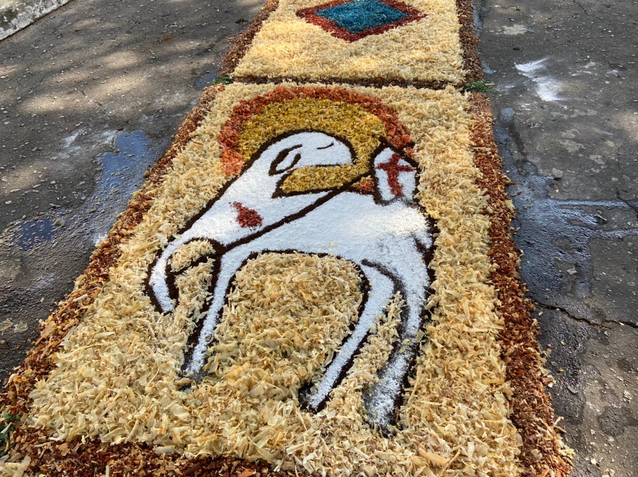 From 6 a.m., volunteers were already preparing the carpets, which hadn't been made for two years due to the pandemic. In addition to the work in the square, a group also organized to offer a hearty breakfast to those who were creating these true works of art. During the celebration, priests, brothers, ministers of communion, altar servers, and readers demonstrated respect and great affection for the solemnity. One of the highlights was the choir, which once again sang and enchanted those who were attending the celebration.