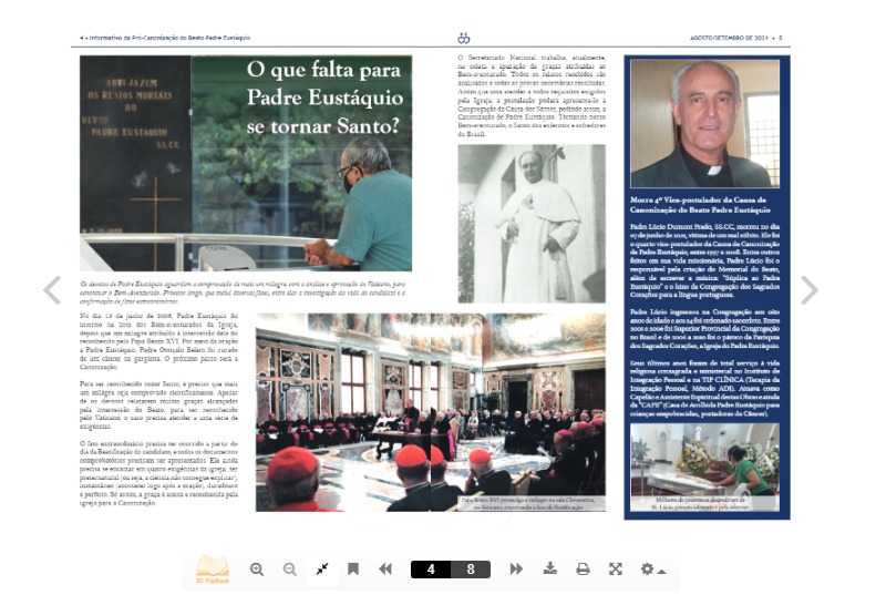 This edition features a very special article discussing what is needed for the Blessed One to be proclaimed a Saint. In addition, it includes testimonies of graces received through the intercession of the Father, news highlights from the Sanctuary of Health and Peace, and updates on items from the Father Eustáquio Store. It also includes a collectible print and photo of the Dutch priest.