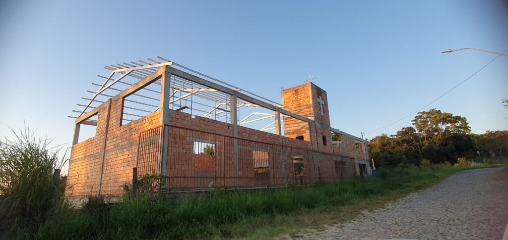 The construction of the Blessed Father Eustace Church in Esmeraldas/MG is already well advanced. The parish has mobilized the population to raise funds for the continuation of the project and to keep raising money so that the entire church can be completed.