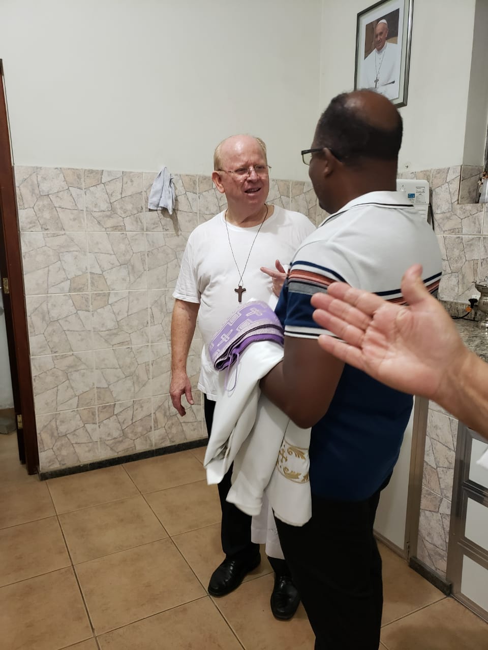 A santa missa foi presidida pelo padre Sérgio Stein, ss.cc, auxiliado por ministros extraordinários da comunhão, grupo de canto, salmista, proclamador e leitor, todos do Santuário Saúde e Paz. A equipe foi recebida pelo reitor daquele santuário, padre Roberto Rubens da Silva, e pelos paroquianos que acolheram a todos com muito carinho.
