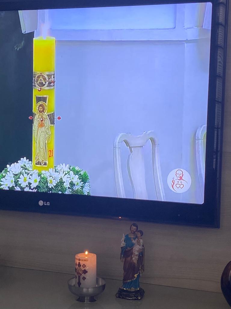Sin embargo, la vela no solo se usaba la noche del Sábado Santo; estas familias siguen encendiendo el cirio pascual durante las celebraciones en línea. Esto se debe a que las misas presenciales siguen prohibidas en Belo Horizonte.