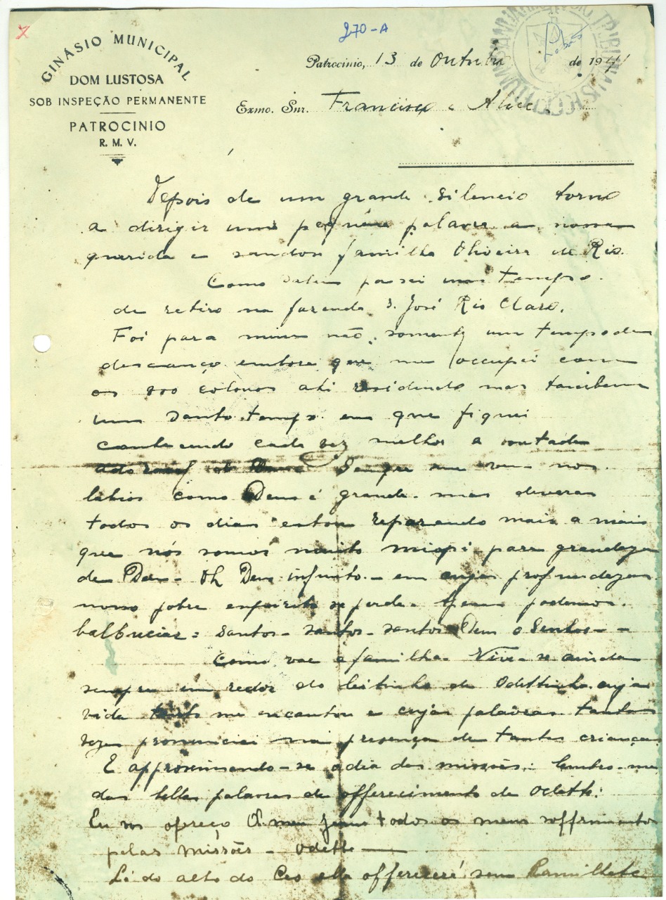 ¿Cómo está la familia? ¿Seguimos viviendo siempre en torno a la leche de Odetinha, cuya vida me encantó y cuyas palabras he pronunciado tantas veces en presencia de tantos niños? Y al acercarse el día de las misiones, recuerdo las hermosas palabras de ofrenda de Odete: «Te ofrezco, oh Jesús mío, todos mis sufrimientos por las misiones». Desde lo alto del cielo, ofrecerá su ramo de lirios puros de pureza y rosas fragantes de amor al Divino Corazón de Jesús para beneficio de las misiones de este valle de lágrimas. Las lágrimas de Odetinha siempre me han acompañado y han sido para mí no solo un recordatorio de muchas virtudes, sino también un consuelo. Este extracto fue extraído de la carta del Padre Eustáquio a los padres de Odetinha, Alice y Francisco, escrita por el Beato en Patrocínio el 13 de octubre de 1941 y conservada en los archivos del futuro Museo Padre Eustáquio.