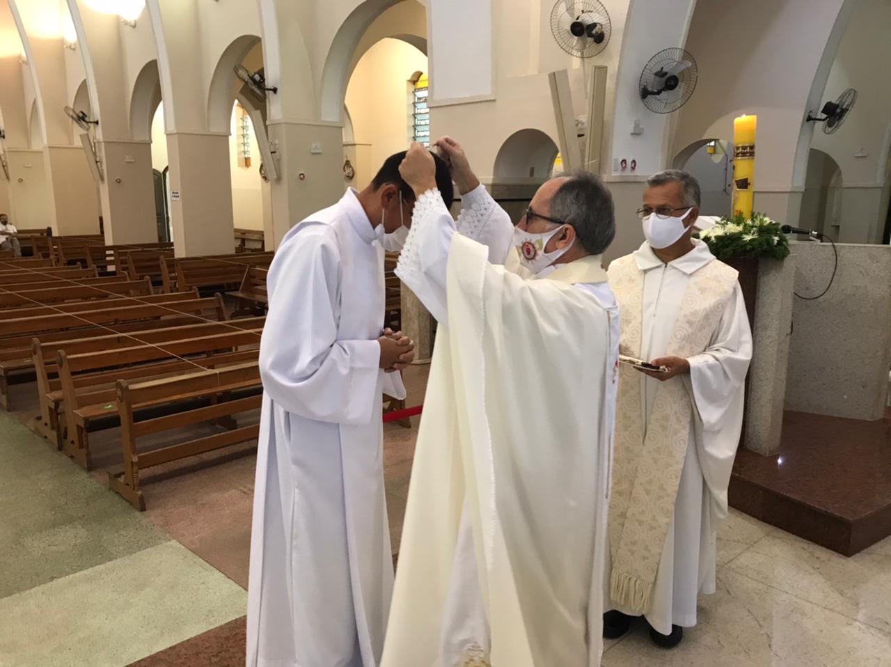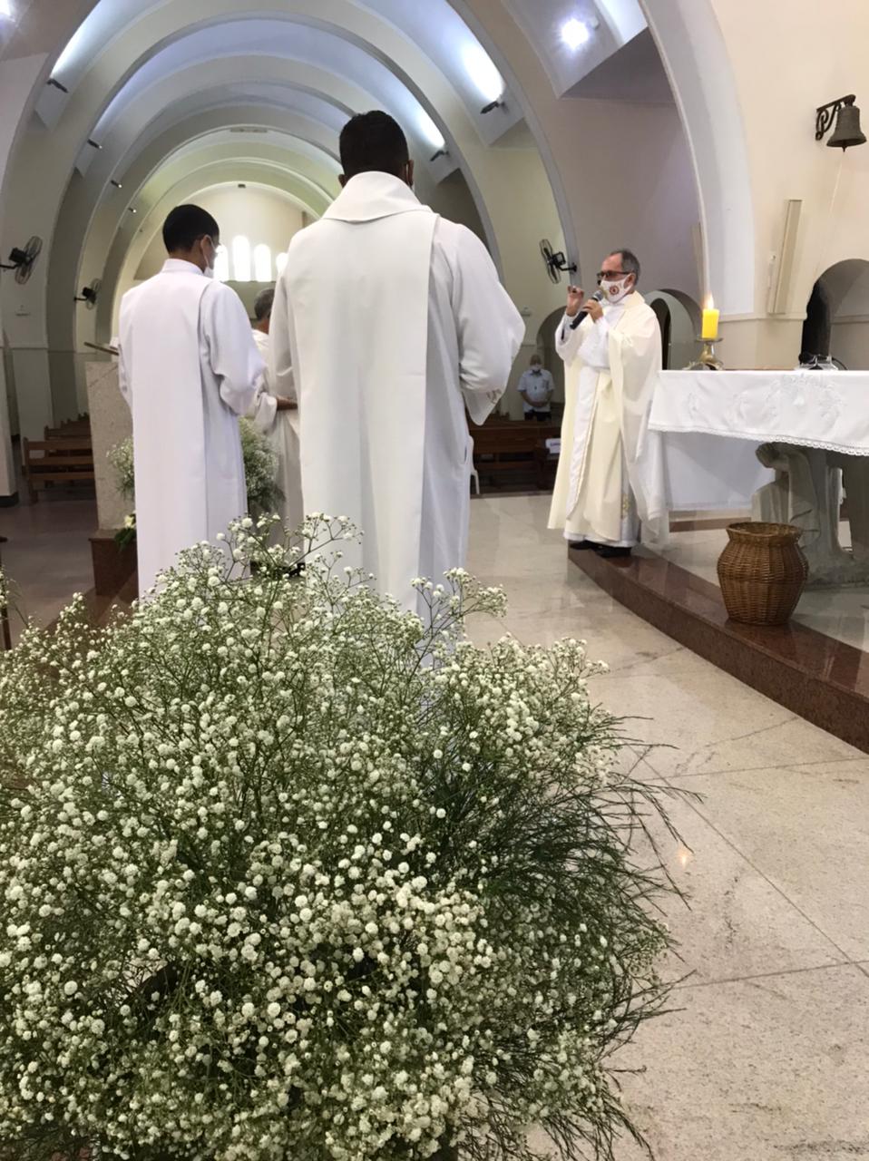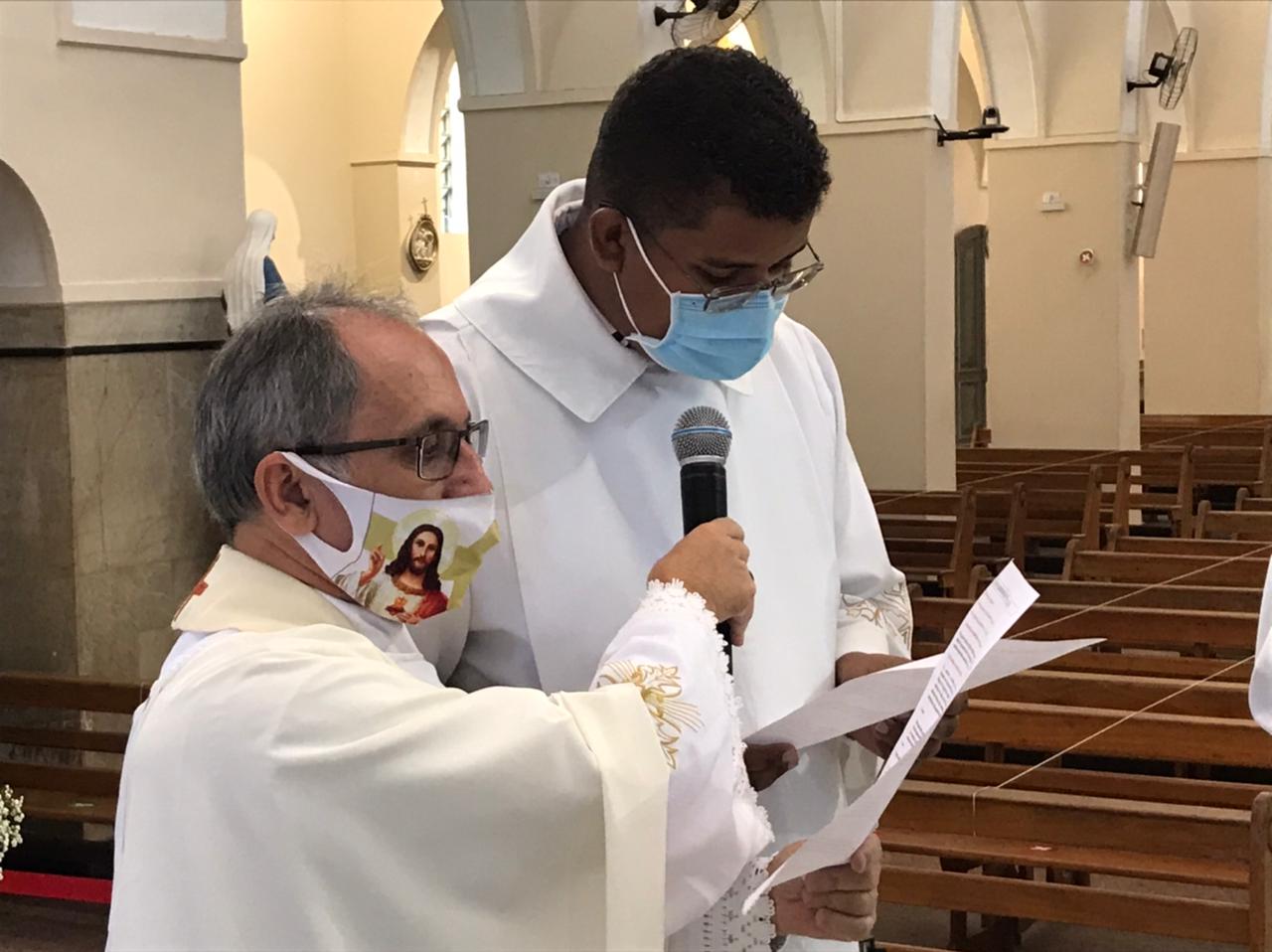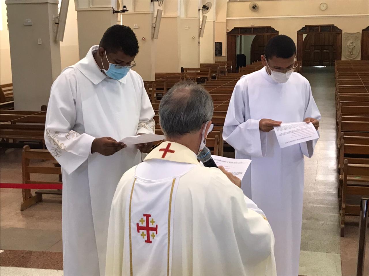 Alrededor de las 11:00 a. m., el superior provincial, Padre Osvânio Mariano, ss.cc., inició el rito de ingreso de los nuevos candidatos a la vida religiosa. Los jóvenes se presentaron y compartieron su experiencia con la institución. El Padre Osvânio les dio la bienvenida con palabras de aliento e inspiración vocacional. Finalmente, Antônio Carlos y Douglas recibieron una cruz, símbolo de los Sagrados Corazones y de su ingreso al Postulantado de la Congregación.