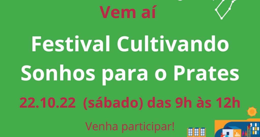 “O Festival Cultivando sonhos para o Prates: Agenda 2030”, será realizado no sábado, dia 22 de outubro, entre 9h e 12h, na Escola Estadual Professor Morais, na Praça Tejo, em Belo Horizonte. O evento vai discutir os projetos viáveis para onde é hoje o Aeroporto Carlos Prates, que deverá ser desativado em breve.
