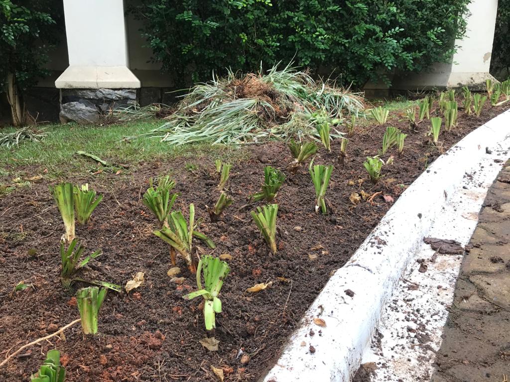 O Trabalho começou nessa terça-feira (16/02) e vai até o fim de semana. Ao todo, 1500 mudas de diversas espécies foram plantadas e cerca de 200 metros de grama.
