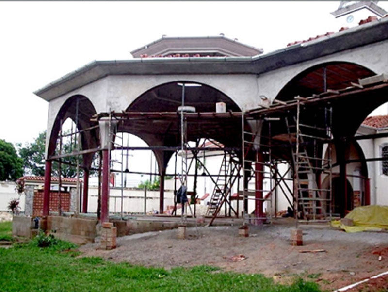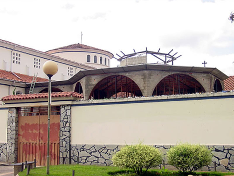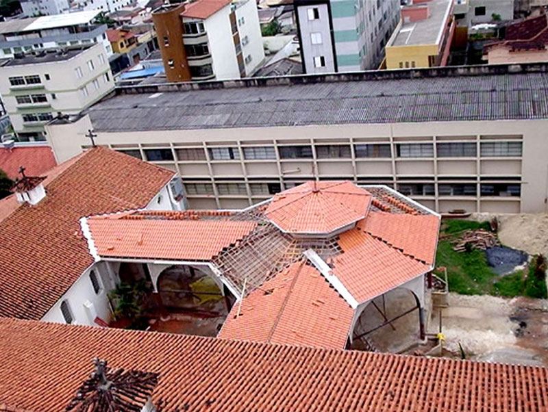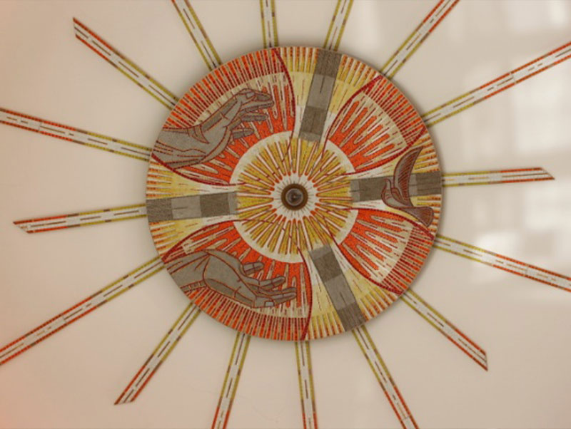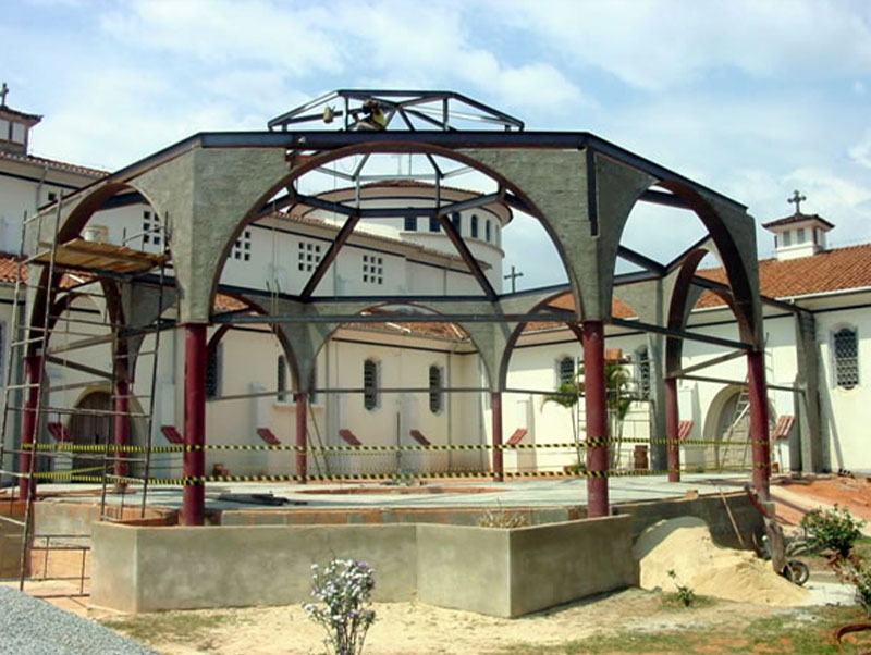 Ainda compondo o ambiente de paz e oração, representada no teto está a Santíssima Trindade: As mãos de Deus, a cruz de Cristo e a pomba do Espírito Santo. A luz ao centro mostra o poder transformador que vem do alto. E, nos jardins, uma majestosa imagem do Bem-Aventurado, em bronze, doada pelos sobrinhos de Padre Eustáquio que moram na Holanda e visitam o local anualmente.
