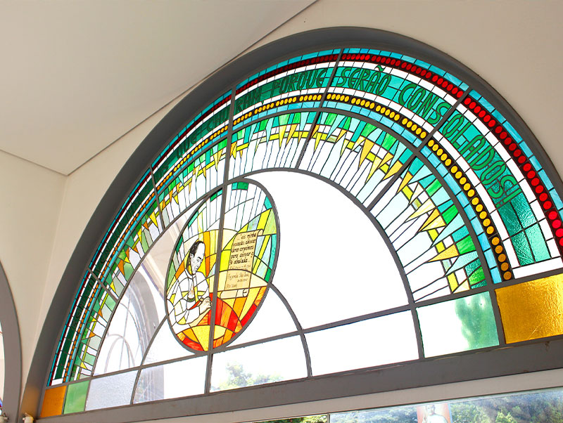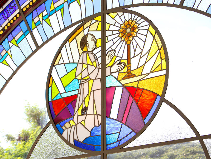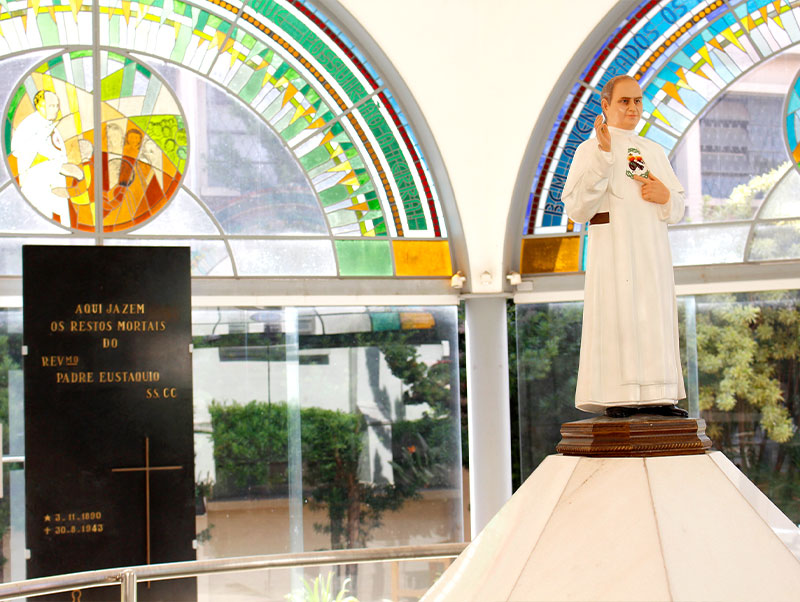 Num ambiente de paz e oração, quem visita o Memorial vivencia um pouco da vida de Padre Eustáquio. Os vitrais, desenhados pela artista plástica Maria Inês Asinelli, em Curitiba-PR, retratam a vida missionária do Beato à luz das Bem-aventuranças.
