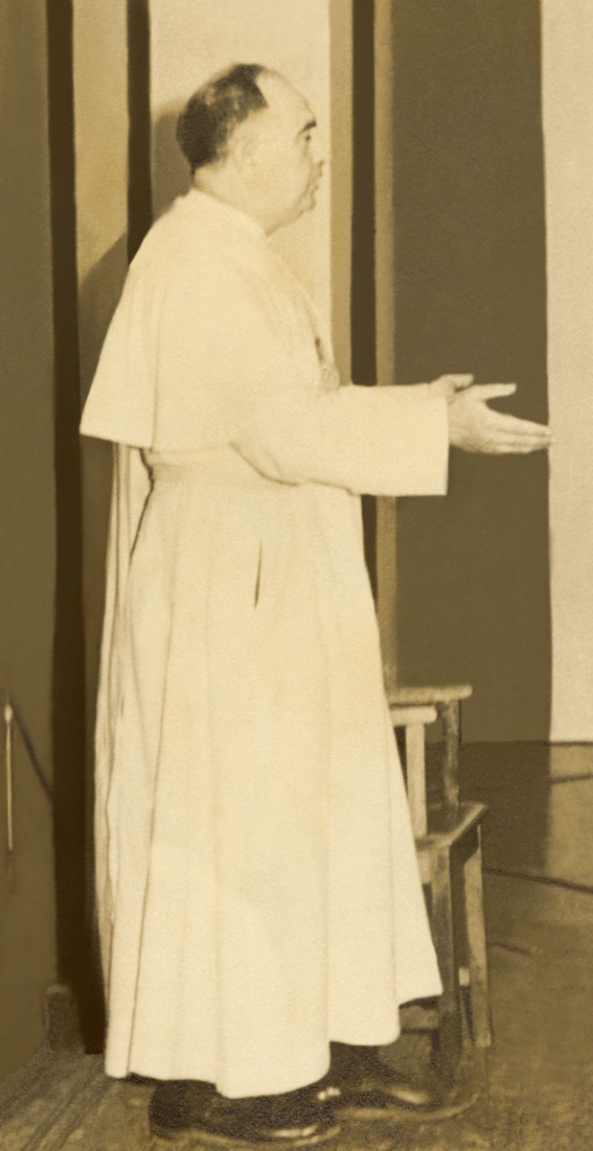 Acolhido pelo Arcebispo D. Antônio Cabral, chegou a Belo Horizonte no dia 07 de abril de 1942. Em maio de 1943 apresentou à comunidade a maquete da futura Matriz dos Sagrados Corações. Foram apenas 16 meses de intenso apostolado a partir da capela de Cristo Rei, da antiga paróquia de São Domingos, futura paróquia dos Sagrados Corações.