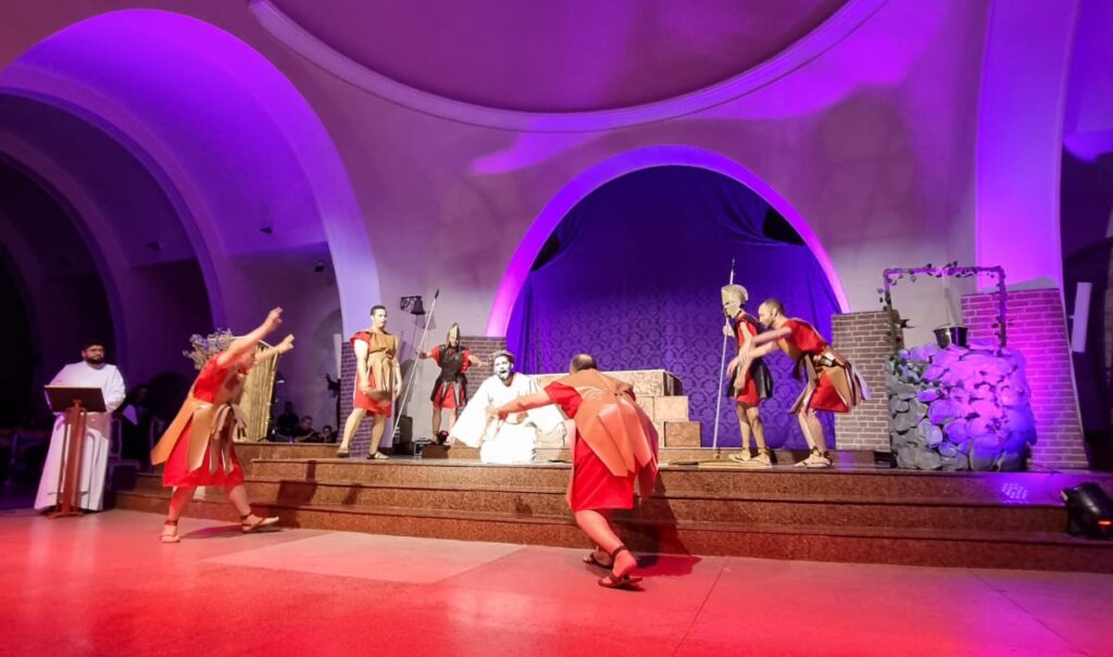 Este ano, o Teatro vai apresentar 18 cenas, desde a infância de Jesus até a crucificação e morte. Tudo será transmitido, ao vivo, pelo Canal Padre Eustáquio, CLIQUE AQUI e já envie o link para seus amigos e familiares também acompanharem.